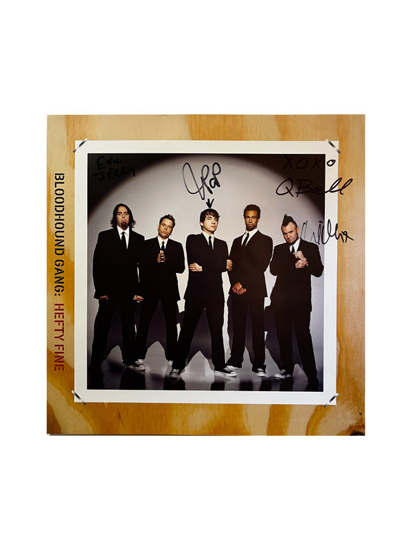 12"x12" two-sided promotional insert from Hefty Fine, signed on one side by Jimmy Pop, DJ Q-Ball, Evil Jared, and Willie the New Guy (note: image may vary from actual product in terms of signature locations, etc.)